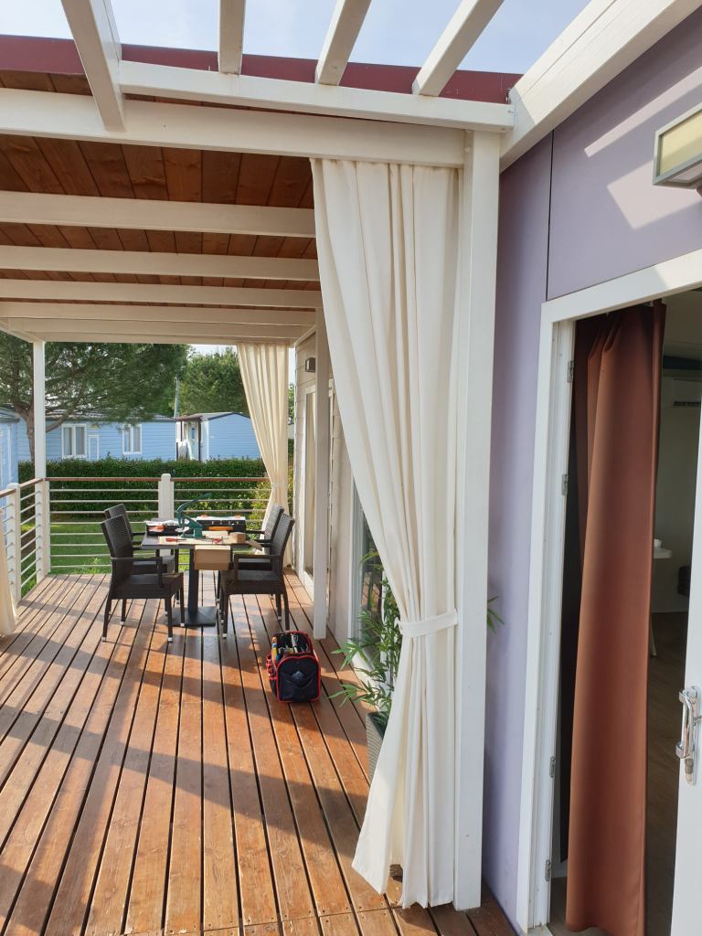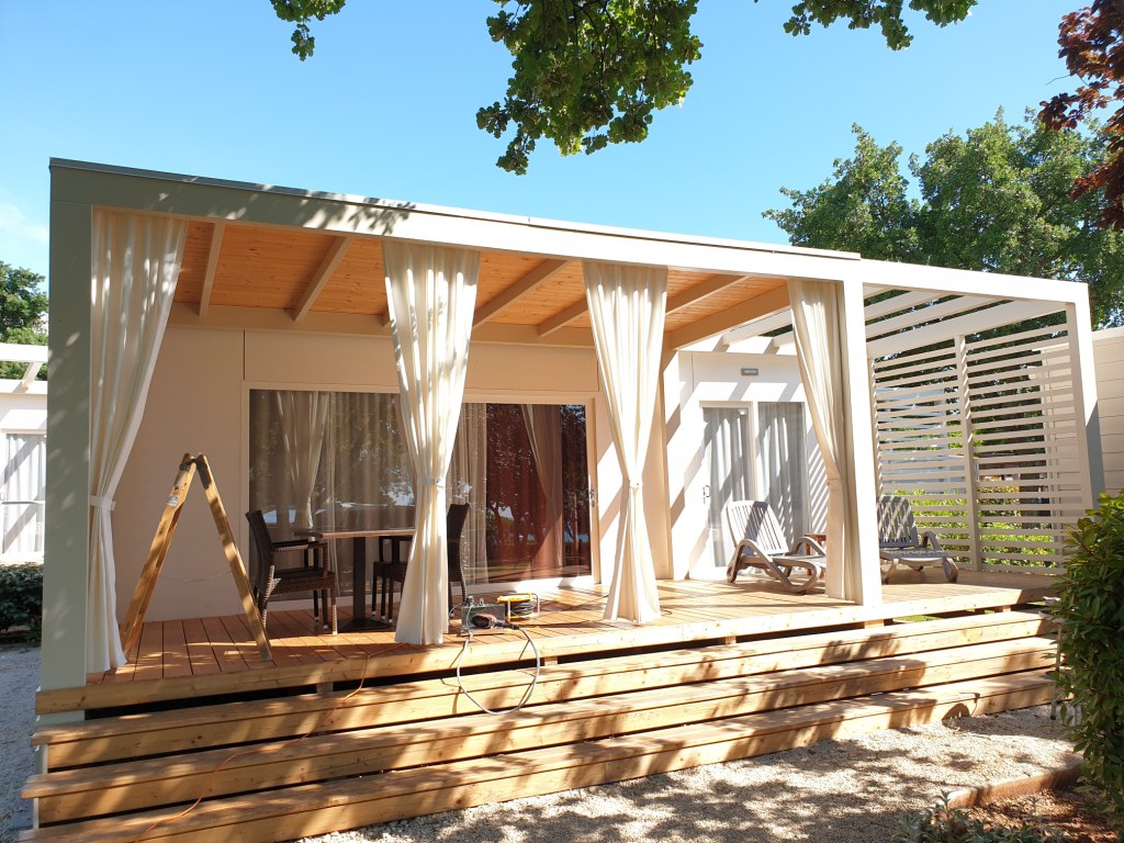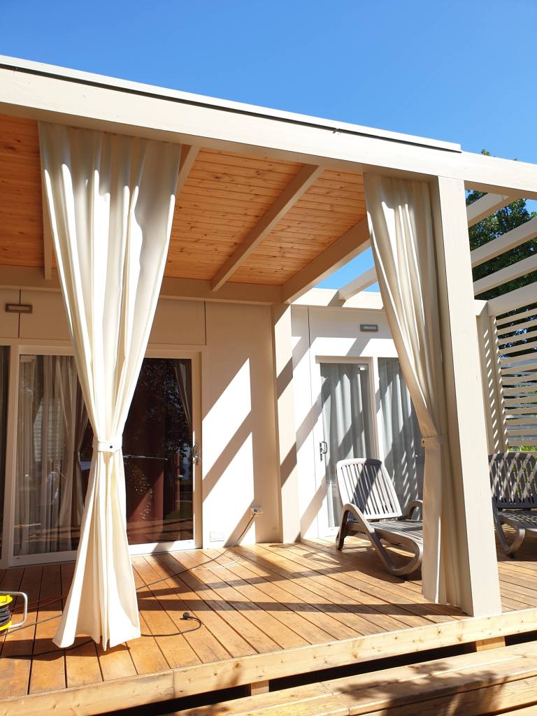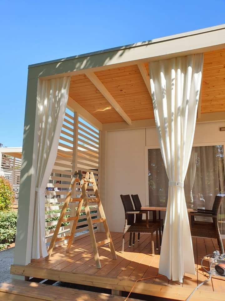 Savjetovanje pri odabiru tkanina, izrada i montaža zastornica i zavjesa mobilne kućice.